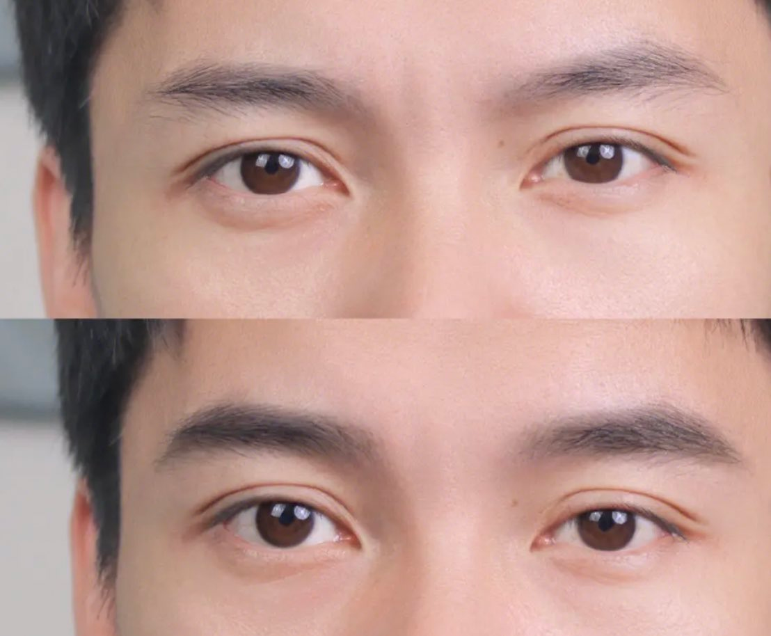 聊聊眉毛避坑!因为大部分男孩子要想把眉毛的 “上挑” 修掉。会把本来的眉毛变的比较细,或者比较短,这时候涉及画眉时加粗眉毛,加粗眉毛时也要注意眉毛的高度问题!!!不要把眉毛画高了!同时避坑一些 “古典风” 的眉型~如图,这种眉毛的违和感直接更上一层楼!虽然是女性的眉型!但是慎重尝试!!